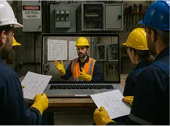 Interactive E-Learning packages (SCORM) with site-based electrical scenarios, wiring diagrams, schematics, micro-quizzes, games, and real-expert video explainers.